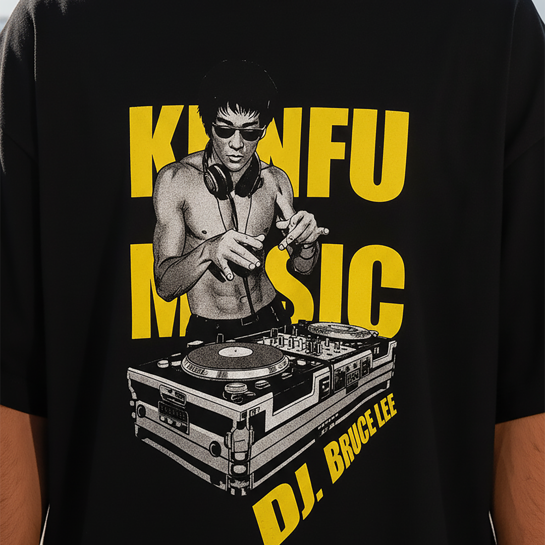 Cuando el ritmo encuentra la disciplina, nace una leyenda. Esta camiseta no solo rinde tributo, la remezcla: del dojo al dancefloor, del silencio al scratch. Bienvenido al universo de DJ Bruce.